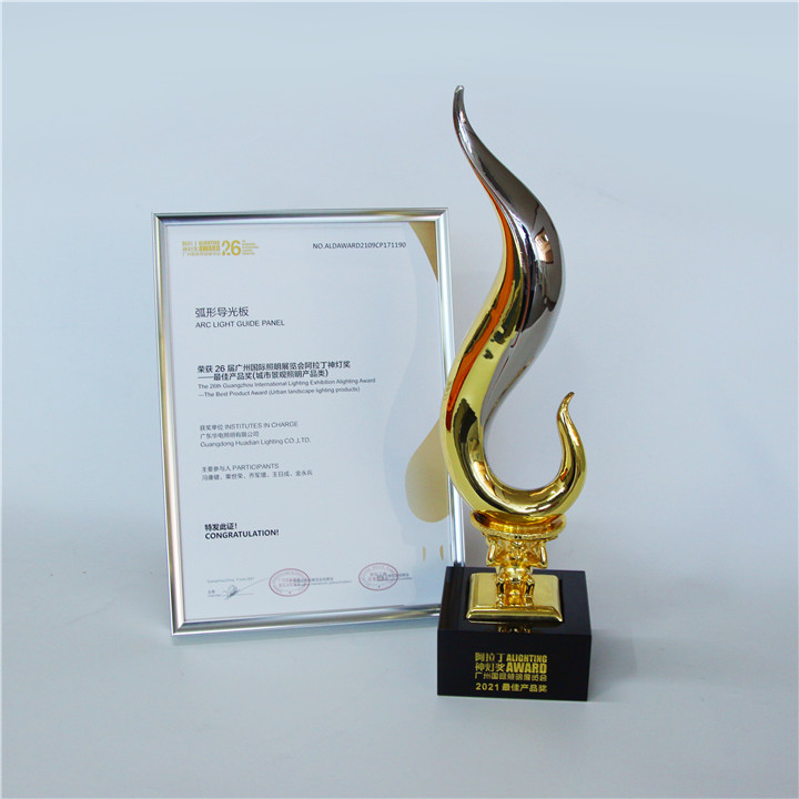 本次,廣東華電為開遠體育館量身定制的“弧形導光板”產品經過生產企業、工程設計、專家、用戶、檢測機構等組成的百余名專業評委,從技術層面、設計層面、應用層面、用戶體驗等多角度進行的評價審議,憑借其亮燈方式、燈具造型、出光原理、安裝方式、亮燈效果等創新點,榮獲“阿拉丁神燈獎·最佳產品獎”,展現出了廣東華電強大的創新能力與研發實力。