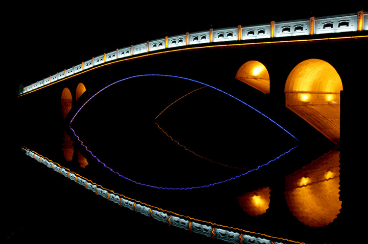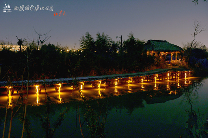 廣東華電參與開遠(yuǎn)鳳凰湖整個(gè)園區(qū)游人親水的景觀通道的亮化,觀景通道以木質(zhì)長廊為載體,木棧道底部邊緣用LED定制線條燈帶勾邊照明,突出棧道的底部輪廓及水中倒影效果;木棧道圍邊上柱體結(jié)構(gòu)中安裝華電明星產(chǎn)品導(dǎo)光板,照射駁岸及水平面,產(chǎn)生出波光粼粼的效果,倒景與實(shí)景相互映襯,在巨大的湖面猶如一面鏡子倒映出靚麗的燈光,給夜間的公園帶來“水中有景,景引人近”的感受,構(gòu)成了一幅寫意的自然畫卷。