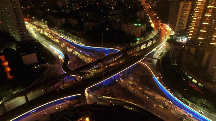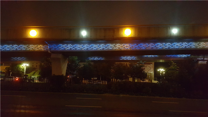 此次亮化工程項(xiàng)目中,主要應(yīng)用了廣東華電貼墻導(dǎo)光板和洗墻燈。橋身照明利用了導(dǎo)光板自身發(fā)光柔和、不刺眼、無(wú)光污染、不影響行車(chē)安全的優(yōu)勢(shì);而輔助照明使用了洗墻,通過(guò)洗墻燈的布光均勻,高亮度的優(yōu)勢(shì),使得橋身的整體輪廓能得到完美的勾勒。另外,在燈光的剛、柔結(jié)合下,讓九龍坡立交橋更具現(xiàn)代氣息。除此之外,燈具本身不會(huì)產(chǎn)生過(guò)多的亮光,不會(huì)給駕駛者帶來(lái)刺眼的感覺(jué),安全且美觀。