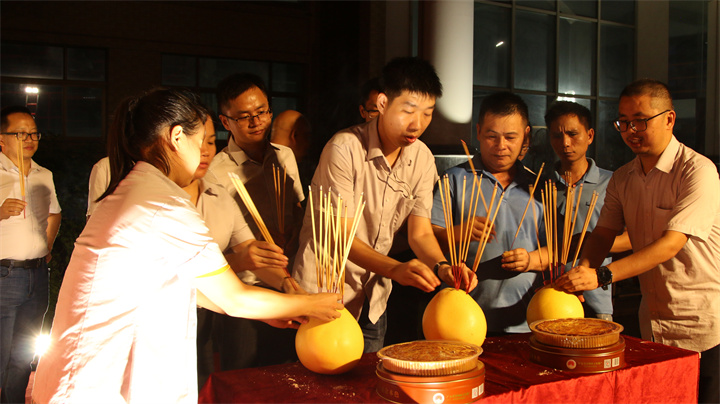 拜月,源自我國一些地方古人對“月神”的一種崇拜活動,延續至今,逐漸演化為民間的賞月、頌月活動,同時也成為現代人渴望團聚、寄托對生活美好愿望的主要形態。在粟總、賀總、莫總、吳總、曾總的帶領下,全體員工以最誠摯的心拜月,希望華電未來再攀高峰。