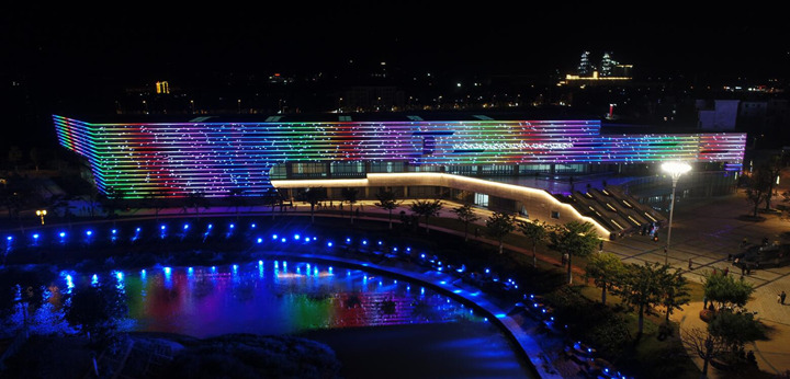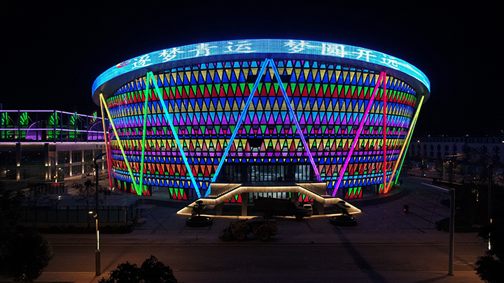 項目簡介:該項目是集運動健身、休閑娛樂、生態養生為一體的綜合性體育設施。我司采用三角形、梯形導光板內裝于玻璃幕墻,與幕墻融為一體,毫無違和感;外立柱則摒棄常規亮化產品,創新地采用弧形導光板包裹,完美貼合圓柱、保護立柱整體性,還具有不眩光,易安裝的優勢。夜幕下的體育館燈光變幻,已然成為開遠市地標建筑。