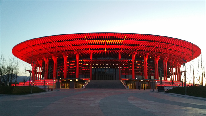 項目簡介:該項目總建筑面積為7.9萬平方米,是懷柔區標志性建筑之一,承辦了國內眾多著名會議。廣東華電選用155W投光燈、108W射燈、12W小功率洗墻燈,分別對地面護欄、環廊、立柱、飛檐等進行了燈光提升,光影效果充分展示了層層疊疊的飛檐,營造出壯觀的氣勢和靈動的韻味,完美詮釋了“漢唐升華·天地飛揚”的建筑設計理念,放眼望去宛若天壇祈年殿的倒影,完美詮釋了中國形象。