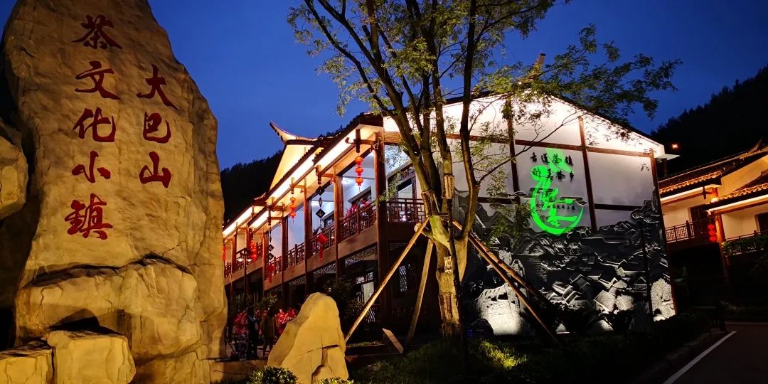 小鎮的白天靜謐而富麗;夜晚的大巴山茶文化小鎮熱鬧非凡,古色古香小鎮的夜流光溢彩,灑落一抹燈影,琴聲低語,賞景品茗享悠閑,繁華一片,夜色璀璨燈光下卻顯得寧靜悠遠,坐擁在大巴山山腳下,小巷穿鎮而設、青山傍鎮而依,一切都是剛剛好,美得令人心醉。
