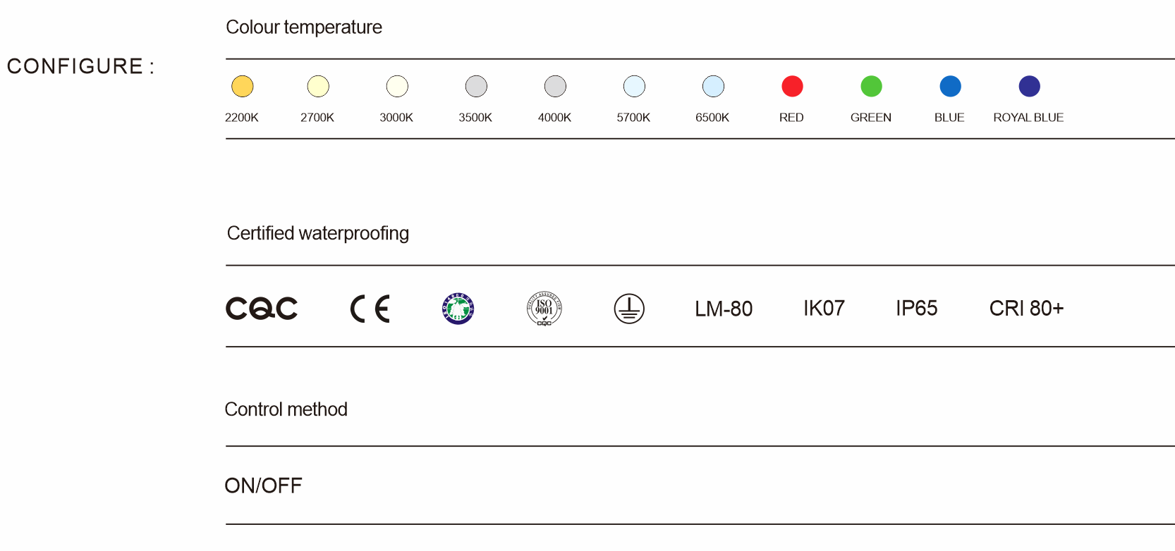 可選項:燈具功率、光色、安裝方式等可非標定制