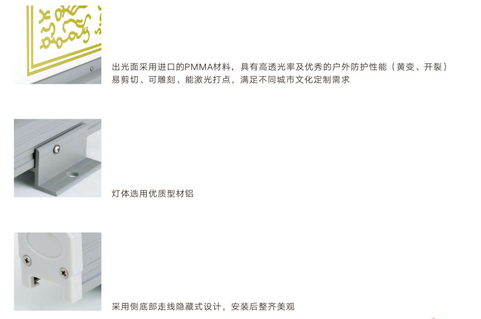 材質:燈體、支架-優質型材鋁;出光面一抗UV PMMA材質;端蓋一阻燃PC注塑成型;螺絲一不銹鋼;電纜一特殊工藝防負 壓電纜線,單端外留150mm