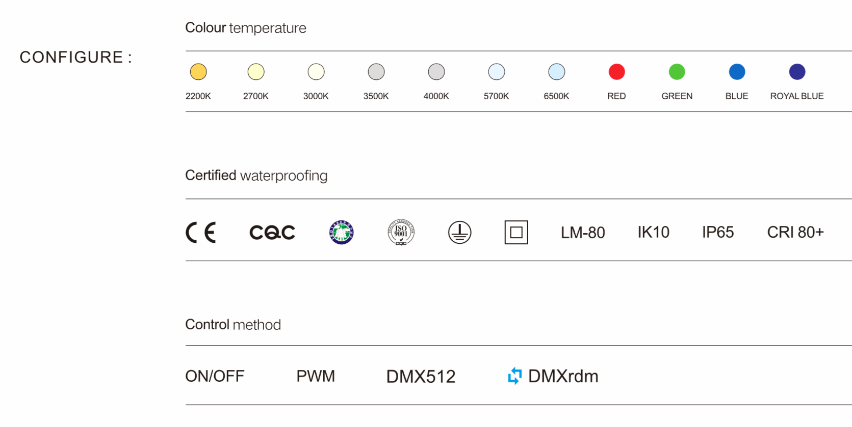 材質:燈體、支架-優質型材鋁;出光面一抗UV PMMA材質;端蓋一阻燃PC注塑成型;螺絲一不銹鋼;電纜一特殊工藝防負 壓電纜線,單端外留300mm